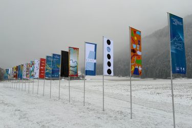 Ma perché creare una bandiera nera? E’ forse un modo per farsi notare di più e far parlare di sé? (ci viene in mente la celebre domanda di Moretti in Ecce Bombo: Che dici vengo? Mi si nota di più se vengo e me ne sto in disparte o se non vengo per niente?). Non proprio, come ci spiega l’artista. “La bandiera nera simboleggia il lutto, è simbolo di dolore e di perdita. Vede, questo tipo di eventi mi rende triste: le bandiere dovrebbero essere a mezz’asta quando si fanno le Olimpiadi. Vorrei far riflettere sul fatto che i Giochi non esistono solo in una dimensione celebrativa, ma devono essere considerati anche in modo critico: mi chiedo se questi eventi sportivi di massa e su larga scala abbiano ancora senso, soprattutto per un territorio come l’Alto Adige, che è costantemente sotto pressione a causa del turismo”. (Per informazione, la scorsa stagione turistica invernale ha registrato in Alto Adige 3,4 milioni di arrivi e 14,3 milioni di presenze, ovvero il numero di notti trascorse da una persona in una struttura alberghiera. Secondo la Provincia di Bolzano, nelle due settimane dei Giochi, ad Anterselva sono attese 200mila persone – gli abitanti dell’Alto Adige sono ca. 539mila)