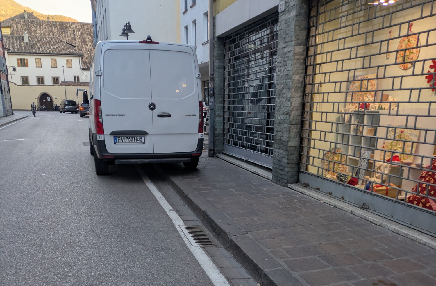 Bolzano. A seguito dell‘articolo pubblicato lo scorso novembre, alcuni lettori ci hanno inviato altre foto delle auto in sosta sui marciapiedi del capoluogo altoatesino, in particolare in zone specifiche del centro. In occasione del mercatino, la situazione è ovviamente peggiorata invece di migliorare e siamo stati costretti a pubblicare solo una selezione delle foto.