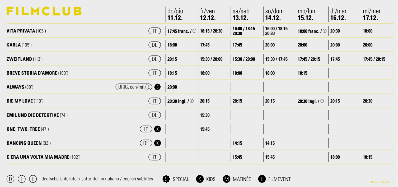 Di seguito il programma completo del Filmclub fino al 17 dicembre:
