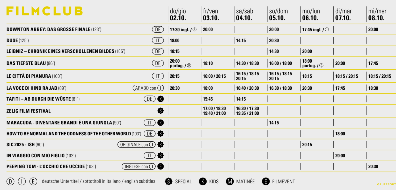 Bolzano: il programma del Filmclub fino all'8 ottobre