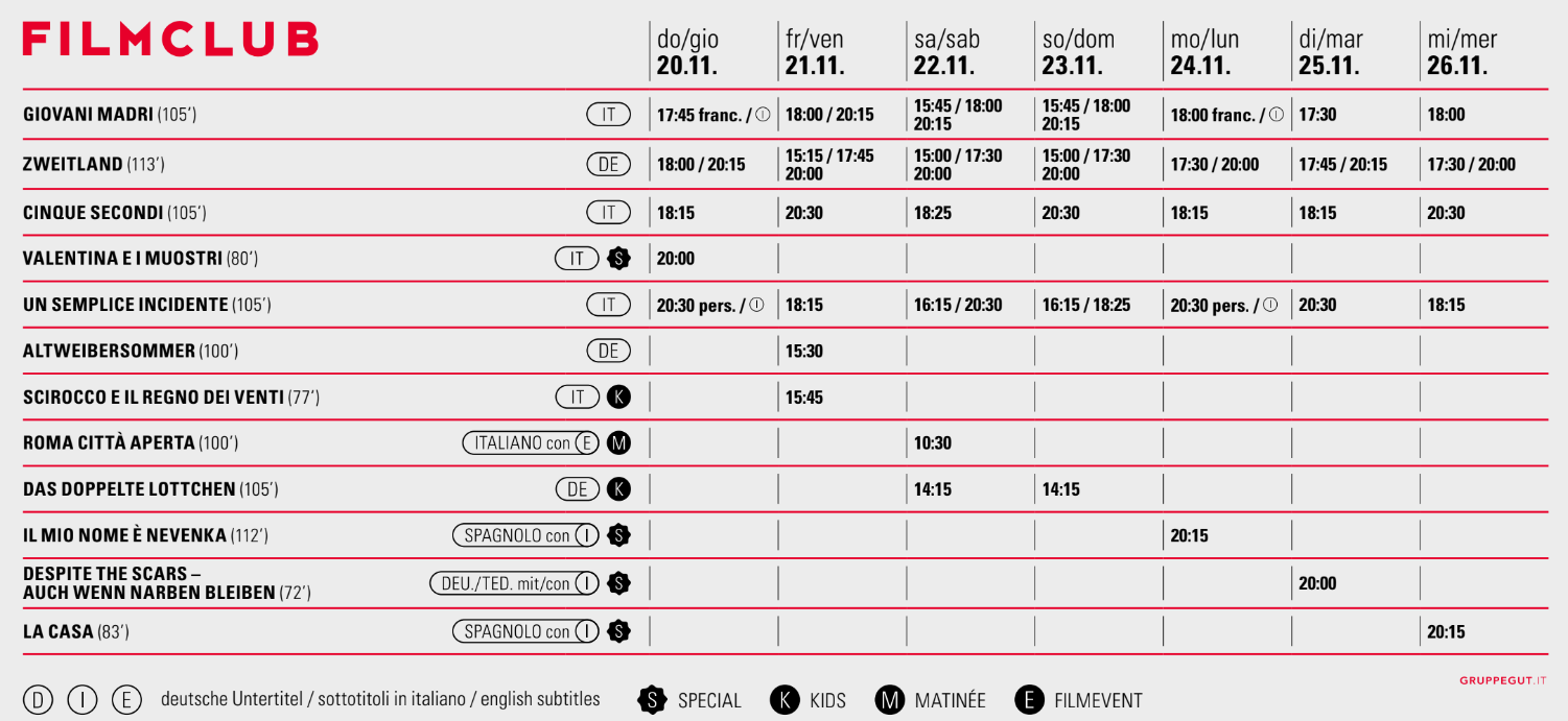 Di seguito il calendario delle proiezioni al Filmclub dal 20 al 26 novembre 2025: