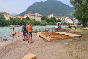 Bolzano. Nei giorni scorsi i Bacini montani hanno allestito due piattaforme di circa 25 metri quadrati ciascuna sulla riva sinistra dell’Isarco, all’altezza del Giardino delle Religioni, e vi hanno posizionato alcuni tronchi d’albero come sedute. Venerdì 30 giugno, l’assessore alla Protezione civile, Arnold Schuler, inaugurerà la nuova area ricreativa insieme all’assessora comunale, Chiara Rabini, e ad altri rappresentanti delle organizzazioni coinvolte inaugureranno la nuova zona ricreativa.