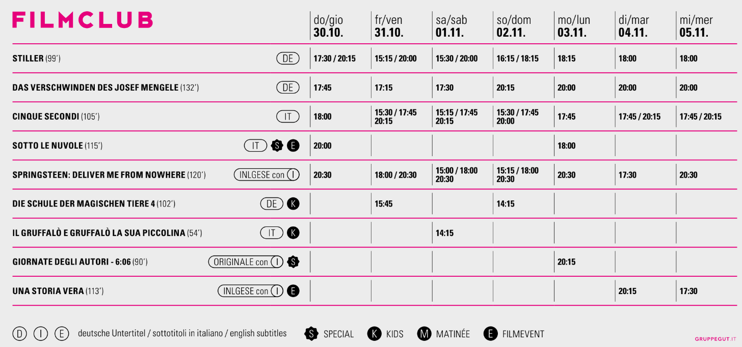Di seguito la programmazione completa del cinema di via Dr. Streiter da mercoledì 30 ottobre a giovedì 5 novembre 2025.