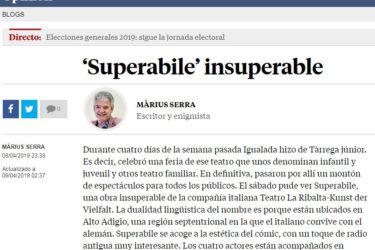 Un altro lago, quello di Valdaora (o Monguelfo), ha invece goduto di inattesa notorietà in Messico grazie a una foto e a un post Instagram del calciatore Javier Hernández Balcázar noto come El chicharito (“Il pisellino”. Non fate quella faccia, è per il colore verde degli occhi…). L’attaccante della nazionale messicana e del West Ham si è, infatti, fatto ritrarre mentre baciava appassionatamente la moglie Sarah Kohan sulle rive del lago della Valpusteria. (la notizia l’abbiamo tratta dal messicano “Pasala!”). Passando al teatro, non possiamo non segnalare la recensione del quotidiano “La Vanguardia” dedicata a “Superabile” (spettacolo prodotto dal bolzanino “Teatro la Ribalta”) nonché due notizie “celebrative” di economia: la nuova sede della Durst di Bressanone (da Piworld) e i 50 anni di Finstral dal francese “Verre&Protections”.