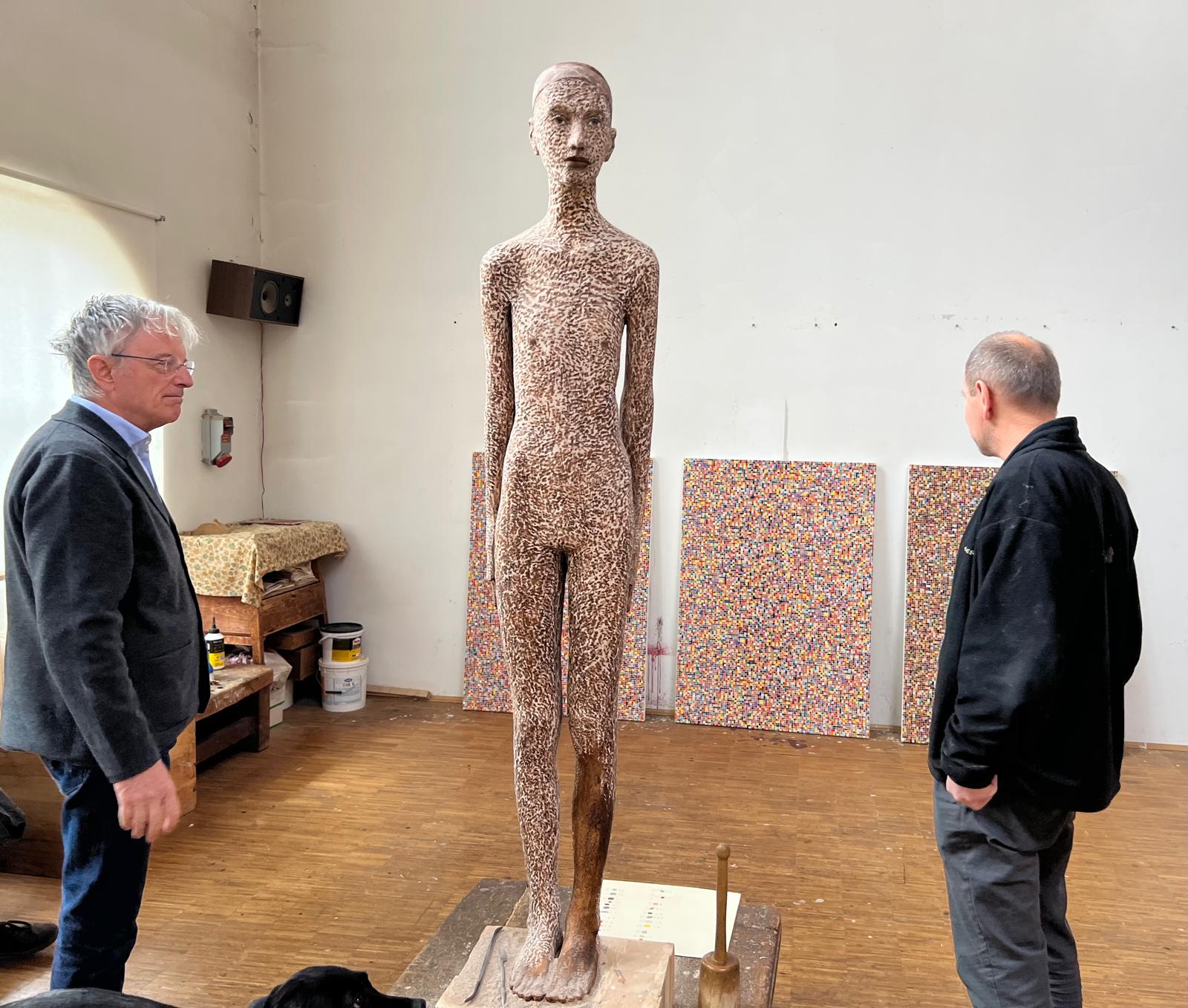 Da sinistra a destra: Markus Klammer con Walter Moroder davanti a una delle figure. Foto courtesy Markus Klammer